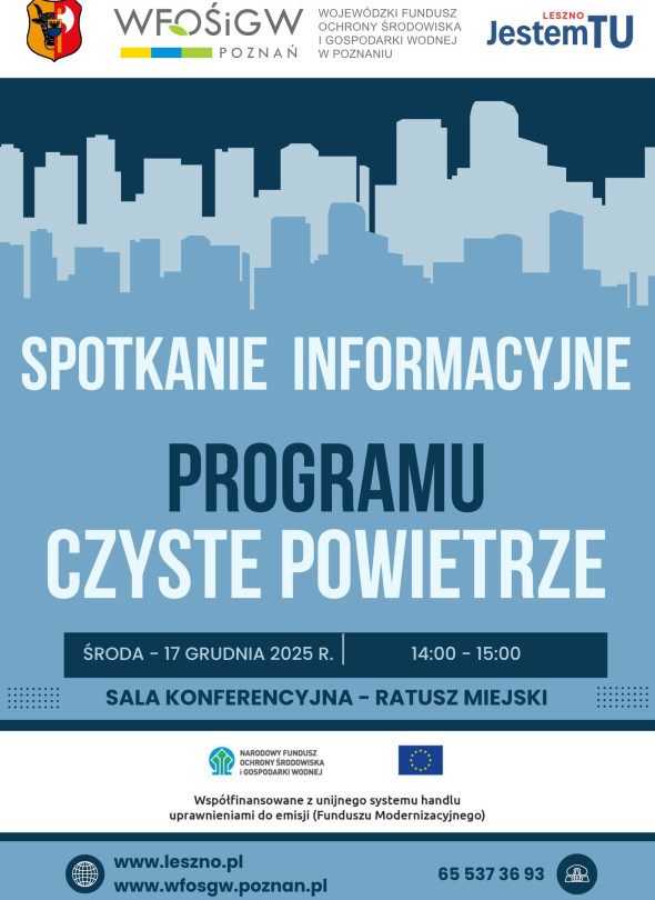 Spotkanie poprowadzą pracownicy punktu konsultacyjno-informacyjnego Programu Czyste Powietrze działającego przy Wydziale Ochrony Środowiska Urzędu Miasta Leszna, którzy odpowiedzą również na Państwa pytania i wątpliwości.