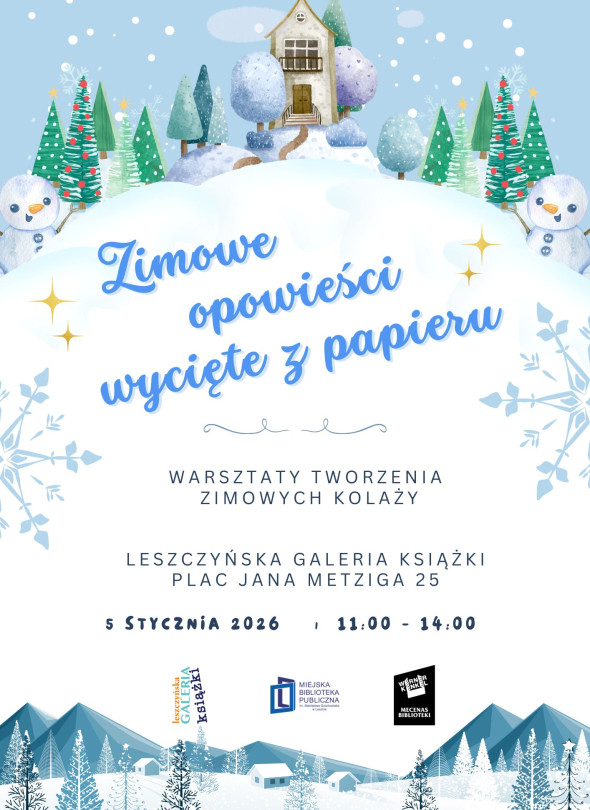 Zimowe opowieści to spotkanie dla dzieci, które odbędzie się 5 stycznia 2026 roku w godz. 11:00–14:00 w Leszczyńskiej Galerii Książki. Punktem wyjścia będzie „Zima Muminków” Tove Jansson – nastrojowa, pełna ciepła opowieść o przyjaźni, wspólnocie i radzeniu sobie z zimową aurą w Dolinie Muminków. Wstęp wolny!
