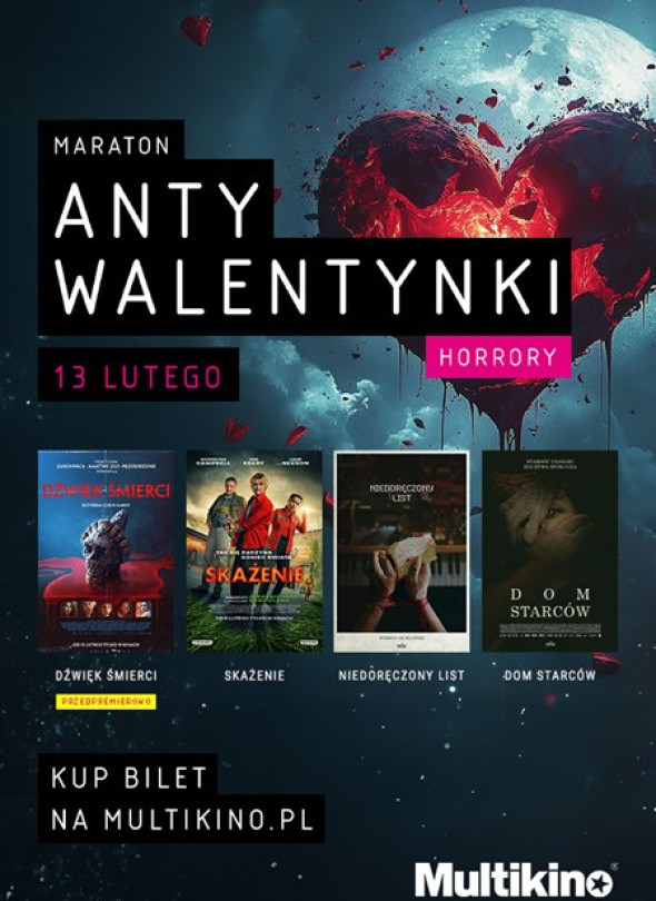 te Walentynki Multikino rzuca wyzwanie przewidywalności i zaprasza do świata, w którym rządzi strach, a napięcie nie opada ani na chwilę. Już 13 lutego 2026 r. zapraszamy na Maraton Horrorów: Krew, pot i VHS – wydarzenie stworzone dla tych, którzy zamiast romantycznych uniesień wybierają gęstą atmosferę grozy i filmową niezależność. To idealna propozycja, by odciąć się od walentynkowego mainstreamu i zanurzyć w wielowymiarowym świecie lęku. Ten maraton to coś więcej niż zwykły seans. To starannie wyselekcjonowany przegląd różnych odmian współczesnego horroru – od przedpremierowych pokazów o starożytnych klątwach, przez klaustrofobiczne thrillery, aż po duszny klimat paranoi w stylu retro VHS. To noc zaplanowana na Twoich zasadach: możesz przeżyć ją z grupą znajomych, dzieląc się emocjami lub solo, w pełnym skupieniu odkrywając mroczne tajemnice skryte na ekranie.