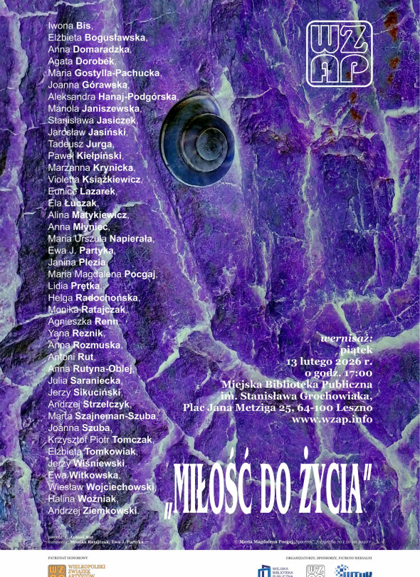 Zapraszamy na otwarcie wystawy zbiorowej członków WZAP „Miłość do życia”, który odbędzie się w piątek 13 lutego 2026 r. o godzinie. 17:00 w Leszczyńskiej Galerii Książki (Plan Jana Metziga 25). Wstęp wolny.