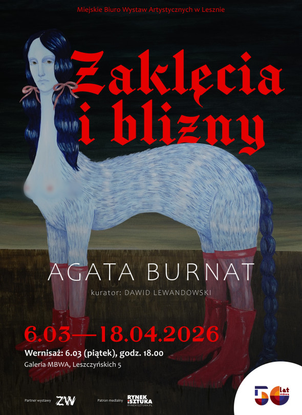 Wystawa „Zaklęcia i blizny” to wizualna podróż przez świat, w którym kobiecość splata się z magią, a codzienność nabiera cech tajemniczego rytuału. Agata Burnat, posługując się malarstwem oraz intermedialnym obiektem, buduje wielowarstwowe narracje osadzone w kontekście współczesnej rzeczywistości. To przestrzenie, w których sacrum i profanum nieustannie się przenikają, tworząc pełne symboliki, niepokojące kompozycje.