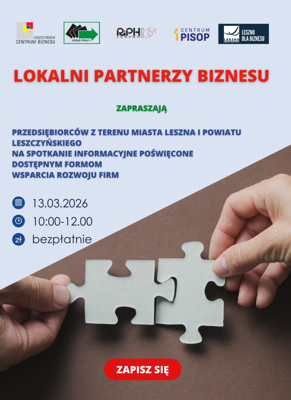 Wydarzenie jest bezpłatne dla przedsiębiorców, ale obowiązują wcześniejsze zapisy: https://lcb.leszno.pl/Spotkanie_informacyjne_z_lokalnymi_partnerami_biznesu.html