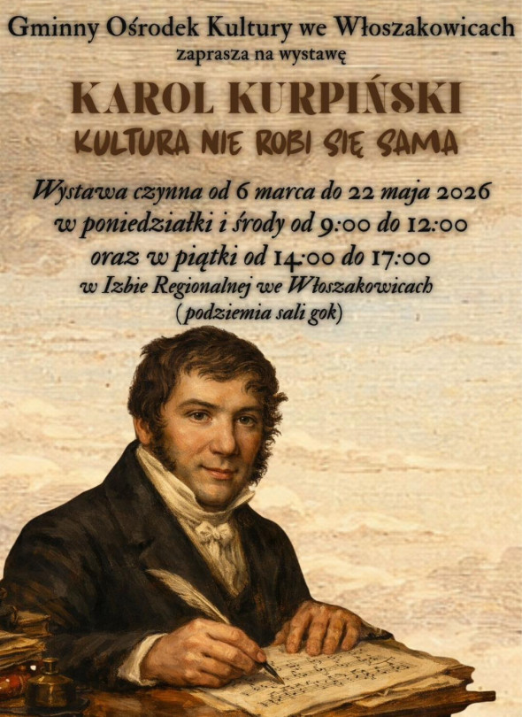 Gminny Ośrodek Kultury we Włoszakowicach serdecznie zaprasza na kolejną, wyjątkową wystawę poświęconą postaci Karola Kurpińskiego. Otwieramy ją w dniu urodzin kompozytora w piątek, 6 marca, o godz. 14:00. Czynna będzie do maja, ale czy warto aż tak długo czekać?
