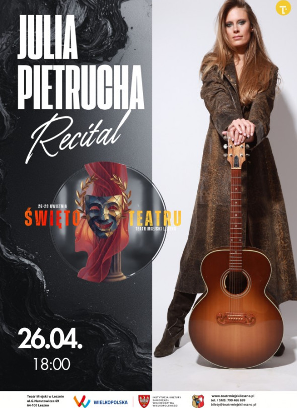 Zapraszamy do zakupu biletów w kasie teatru – tel. 790 466 699 lub online https://www.teatrmiejskileszno.pl/SWIETO_TEATRU_JULIA_PIETRUCHA_RECITAL,12,207