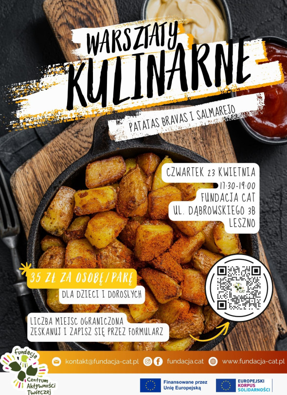 Wspólnie przygotujemy salmorejo i patatas bravas – proste, ale konkretne klasyki hiszpańskiej kuchni. Będzie mieszanie, krojenie, próbowanie i oczywiście jedzenie tego, co sami stworzycie.