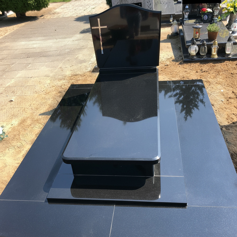 to obecnie dominują odcienie szarości i grafitu, często łączy się płyty jaśniejsze z ciemnymi, także z czarnymi. W tym drugim przypadku warto postawić na taki wariant, w którym płyty poziome będą jaśniejsze, a elementy pionowe – czarne. To rozwiązanie jest praktyczniejsze, o taki nagrobek jest łatwiej zadbać.