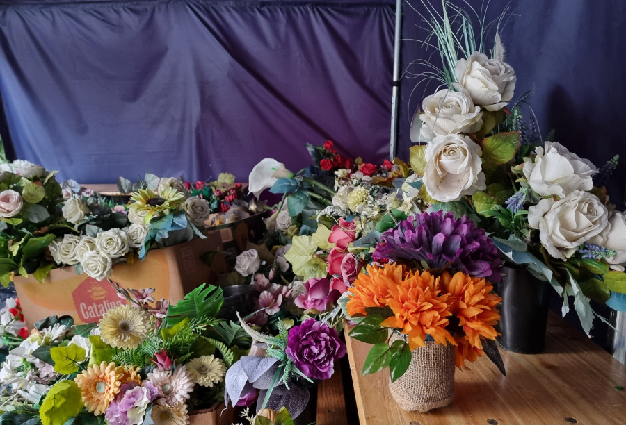 Zwożone wiązanki nim trafią ponownie do obiegu są odświeżane pod bacznym okiem florystki - wolontariuszki Anny Bergman.