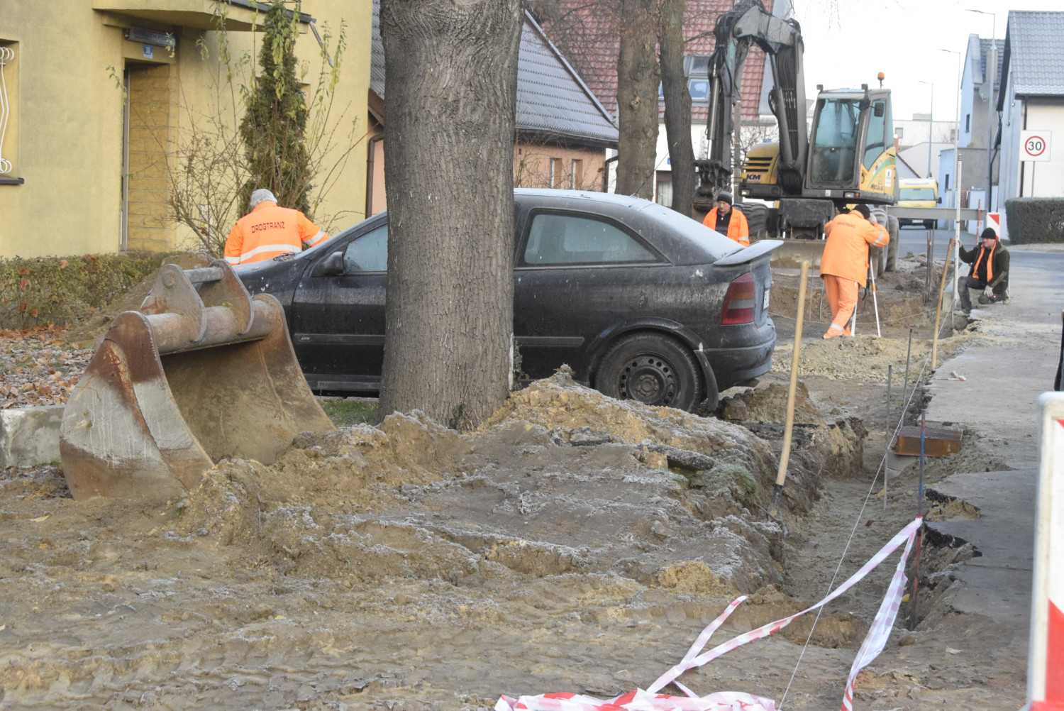 Trwa budowa miejsc postojowych na Rynku Zaborowskim w Lesznie. Jeżeli właściciel nie usunie stojącego na terenie budowy auta, będzie o jedno miejsce mniej.