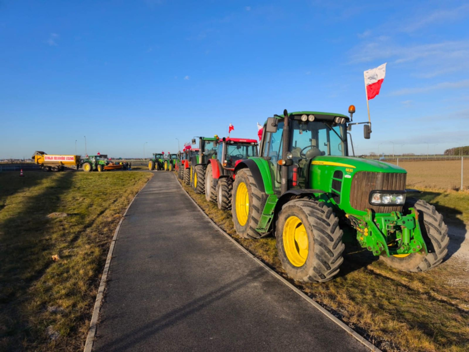 Na S5 w okolicach Leszna protest przebiega spokojnie, rolnicy nie blokują przejazdu, a jedynie stoją na uboczu oflagowanymi ciągnikami.