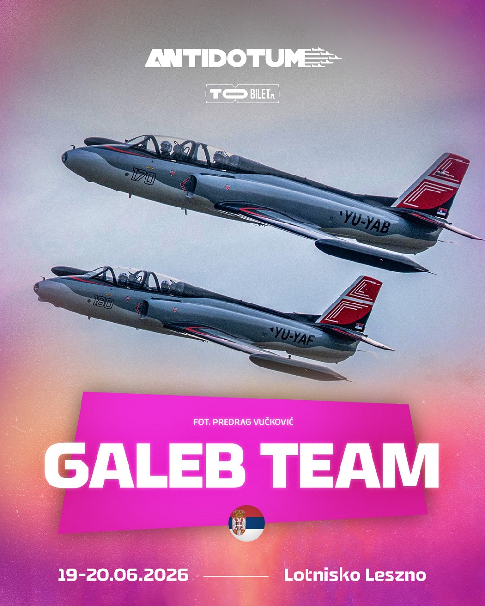 Co poniedziałek Lotnisko Leszno prezentuje kolejnych uczestników Antidotum AirShow 2026. Tym razem hit - pierwszy raz w Polsce zaprezentują się serbskie odrzutowce!