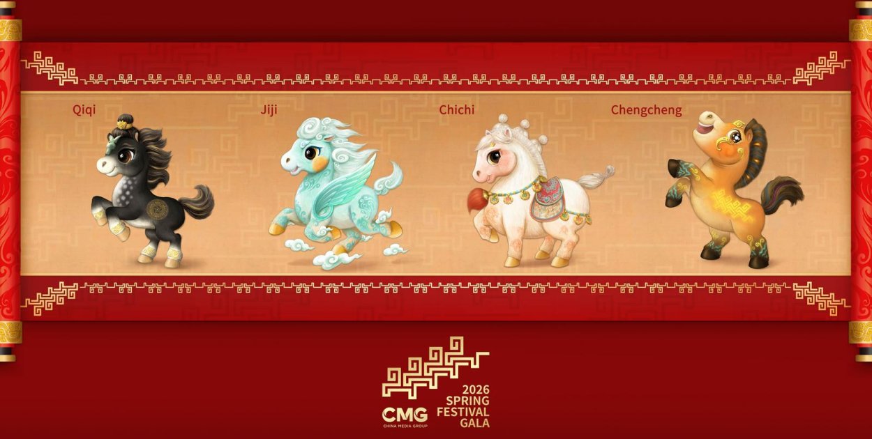 Cztery rumki pędzą, by wyznaczyć nowy kurs! 18 grudnia Chińska Grupa Mediów(CMG) zaprezentowała maskotkę na Galę Święta Wiosny 2026. Cztery piękne konie o imionach Qiqi, Jiji, Chichi i Chengcheng są pełne życia, urocze i pełne energii. Wizerunek czterech rumaków doskonale odzwierciedla hasło Gali 2026 - Galopujące rumaki są nie do powstrzymania!
