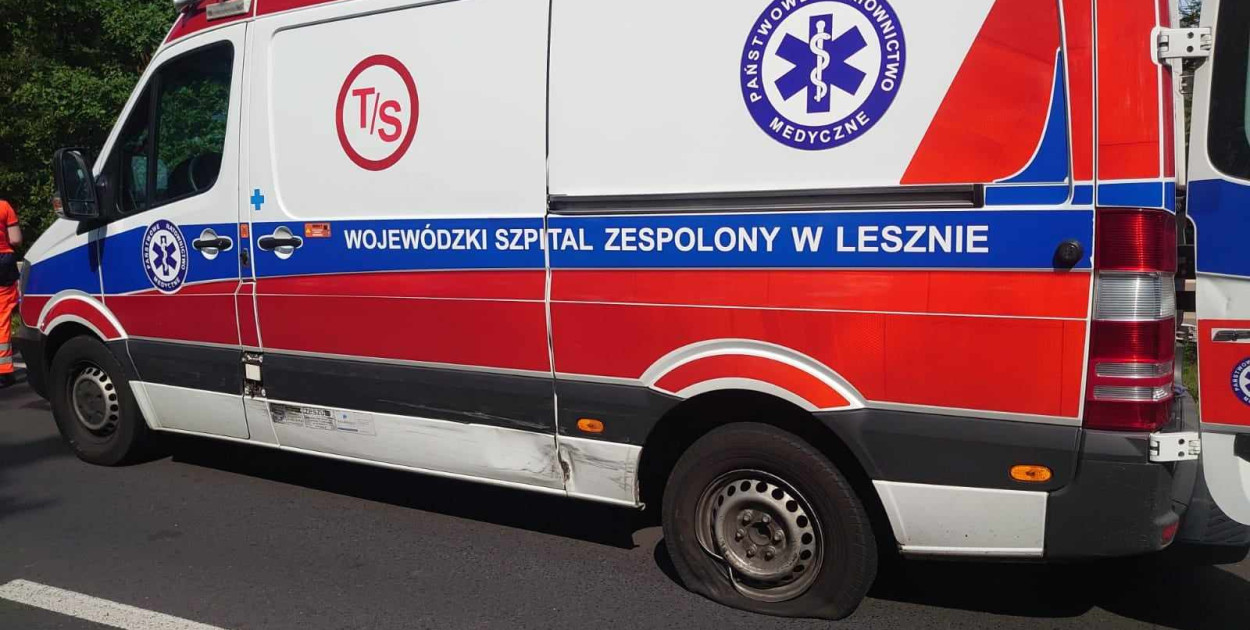 Mazda kierowana przez 47-latka z gminy Rydzyna jechała od strony Leszna, natomiast karetka od strony Kąkolewa.