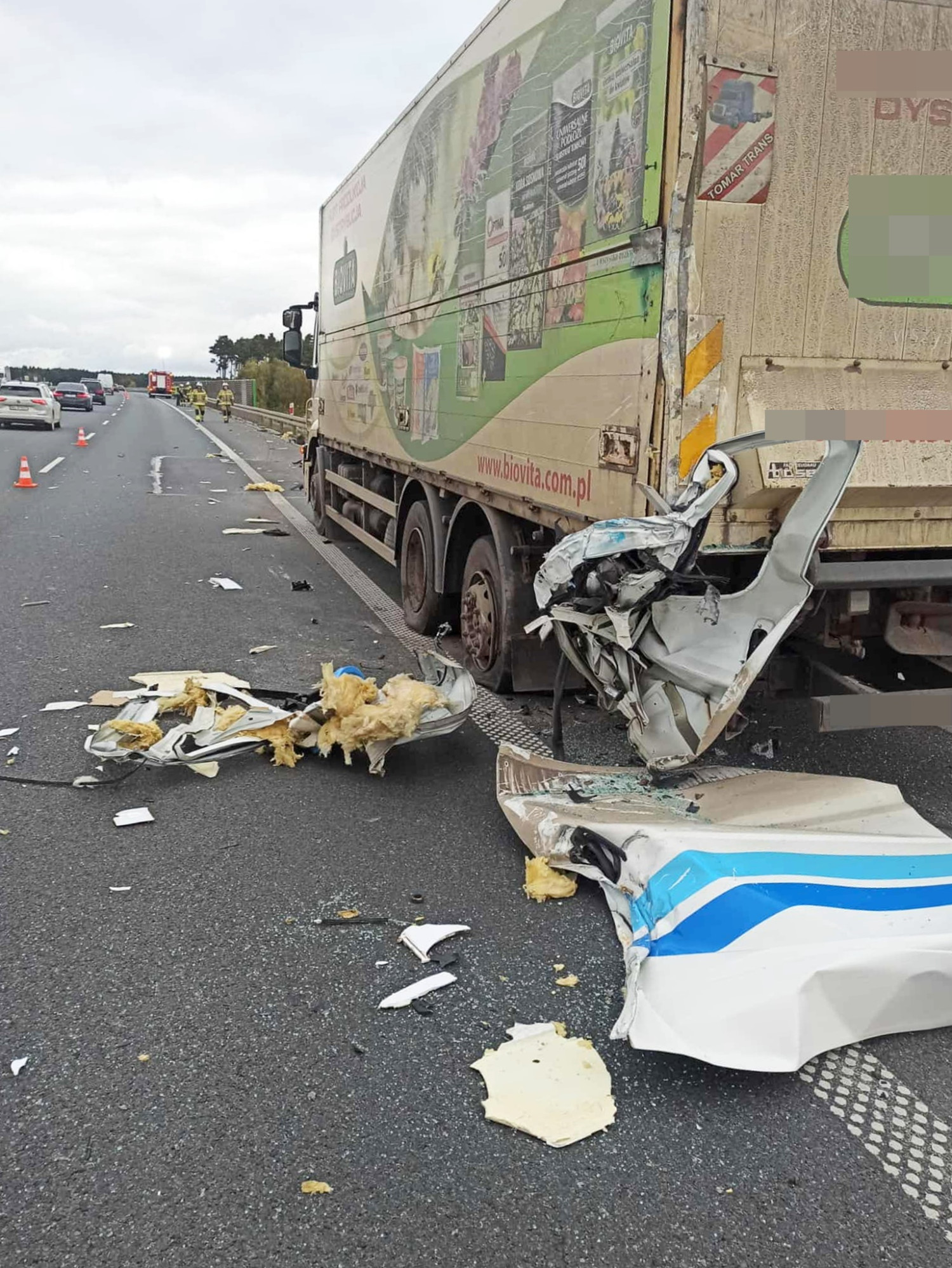 W ciągnik siodłowy stojący na pasie awaryjnym z powodu uszkodzonej opony wjechało renault – bus do transportu leków z numerem rejestracyjnym z powiatu kieleckiego.
