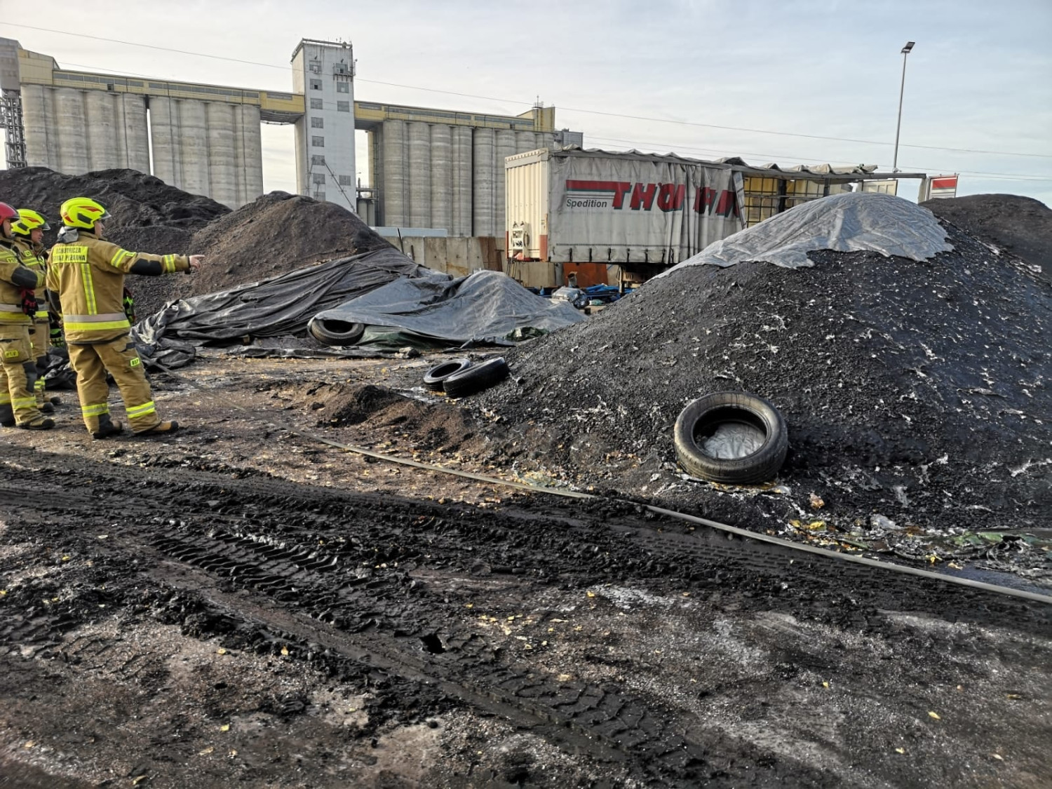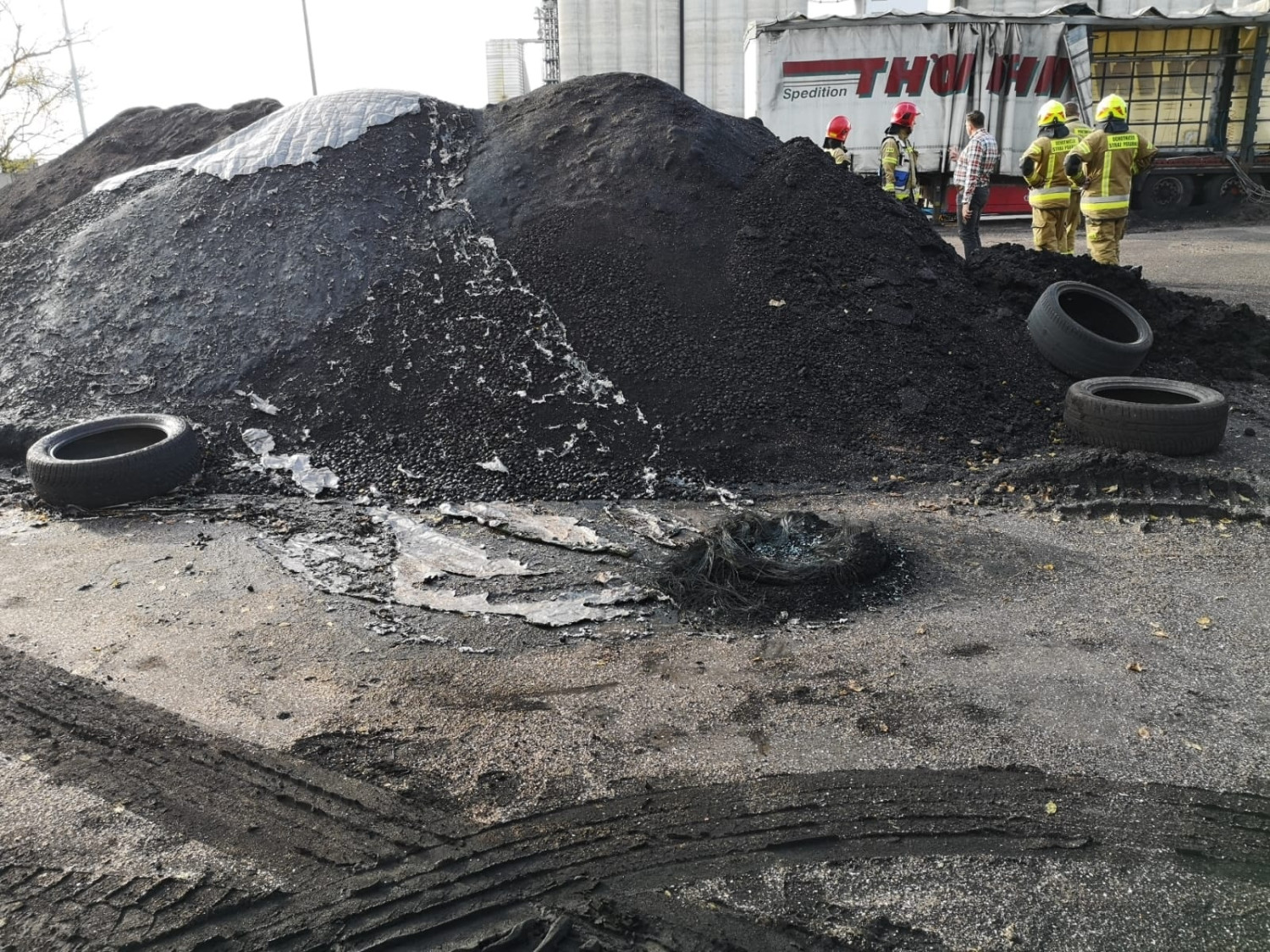 W zawiadomieniu była mowa o pożarze, tymczasem na miejscu okazało się, że tliła się pryzma opału i z tego powodu panowało zadymienie.