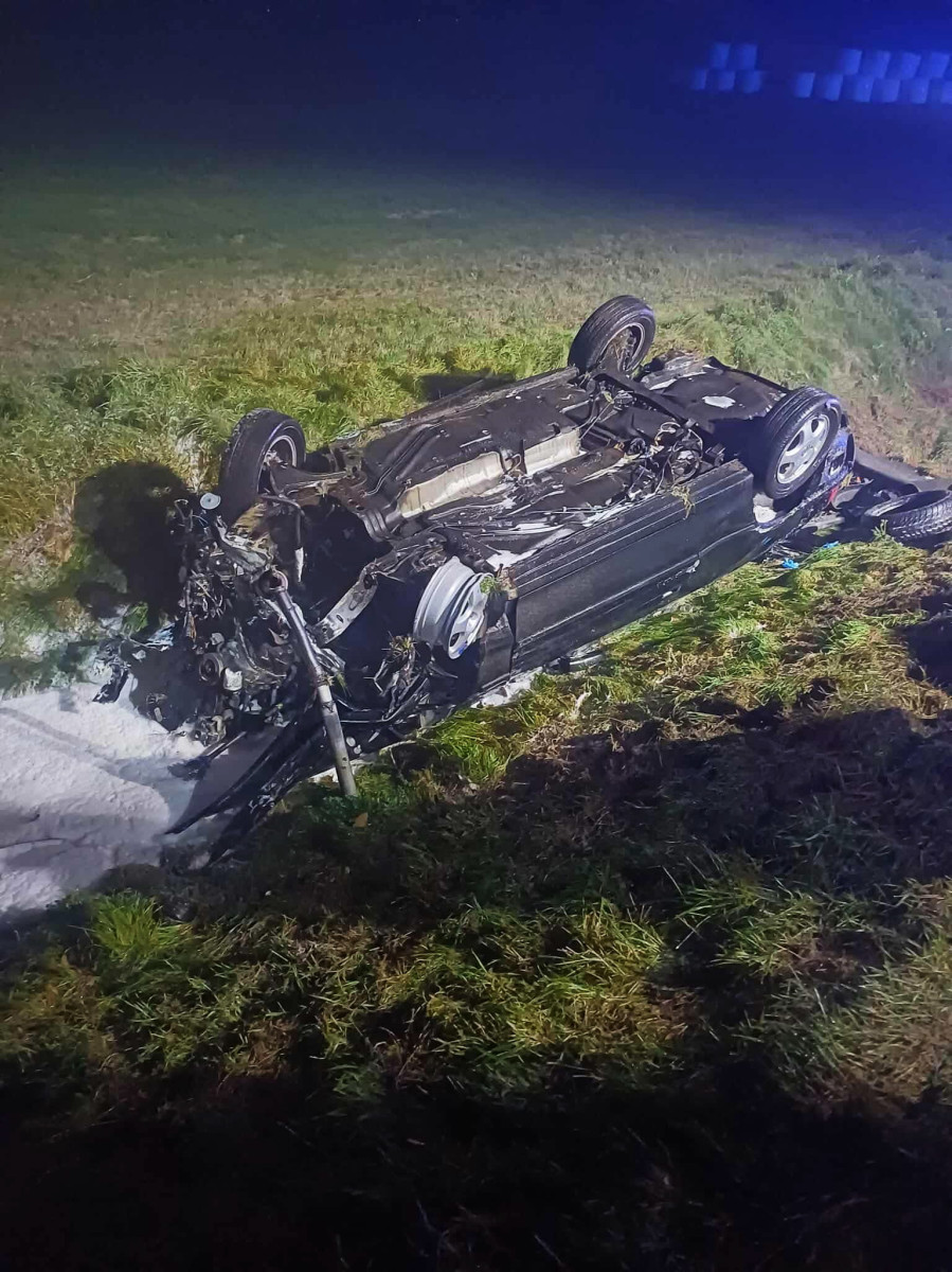 Prawdopodobnie na skutek nadmiernej prędkości jazdy i nie tylko z tego powodu, o czym piszemy poniżej, z drogi wypadł, wpadł na pole i dachował opel vectra na niemieckich tablicach rejestracyjnych, którym jechało trzech mężczyzn, w wieku 17, 19 i 20 lat - wszyscy z gminy Wijewo.
