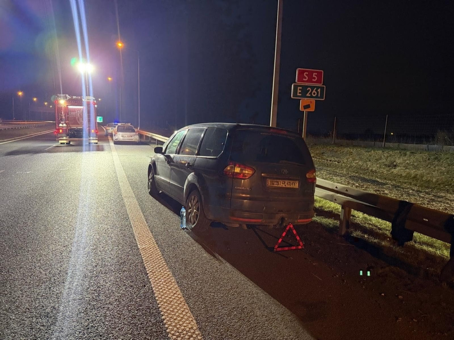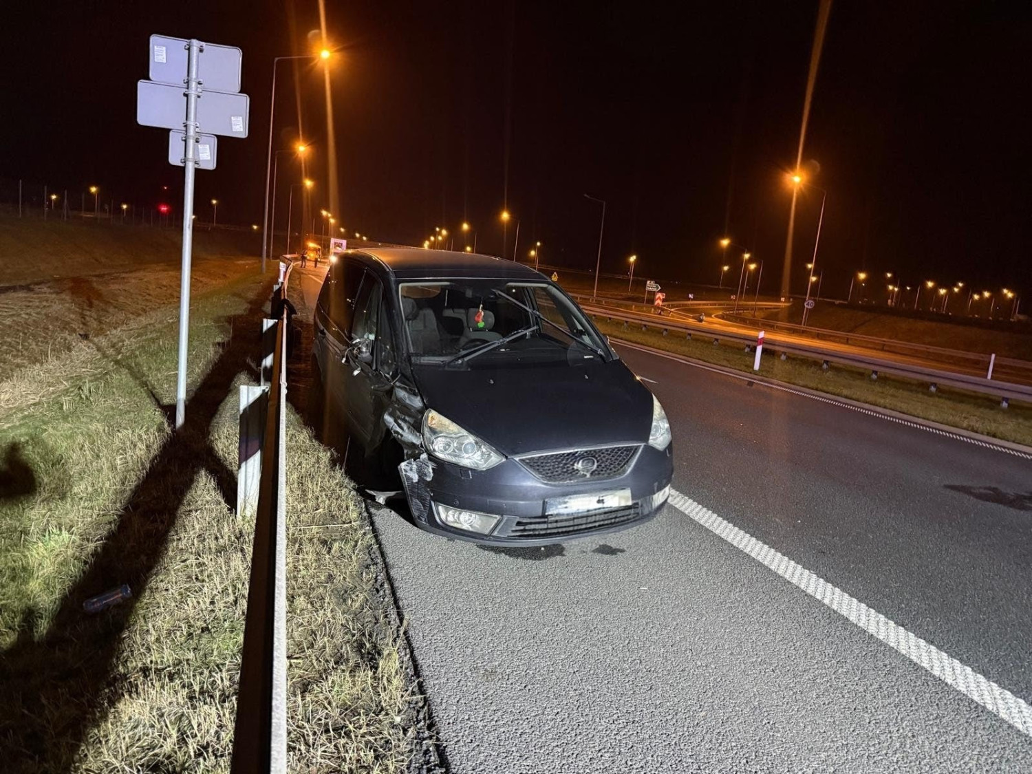 Ford galaxy kierowany przez 41-letniego mieszkańca Inowrocławia wjechał na drogę S5 węzłem Kościan Południe. Przejechał około 200 metrów w kierunku Poznania. Kierowca zasłabł i dlatego samochód wjechał w barierę energochłonną. W aucie był także pasażer.