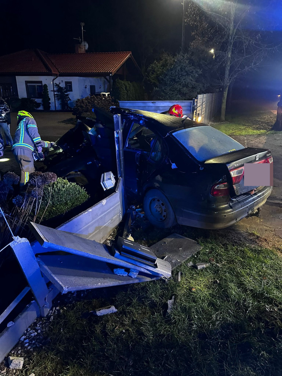 Do wypadku doszło w czwartek, 18 grudnia tuż przed godz. 17. Seatem na tablicach rejestracyjnych powiatu leszczyńskiego kierował 34-letni mieszkaniec gminy Osieczna. Stracił panowanie nad autem i wjechał w bramę posesji. Uszkodził także furtkę i dwa odcinki ogrodzenia.