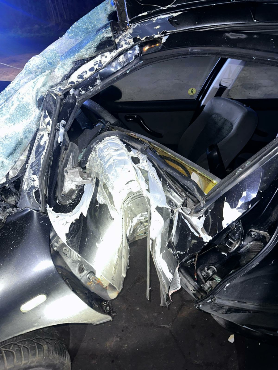 Samochód w zasadzie się rozpadł od uderzenia. Kierowcę przewieziono do szpitala, ale nic groźnego mu się nie stało. Miał furę (nie licząc tej zniszczonej) szczęścia. Oprócz pogotowia ratunkowego interweniowała policja i strażacy (PSP Leszno, OSP Osieczna).