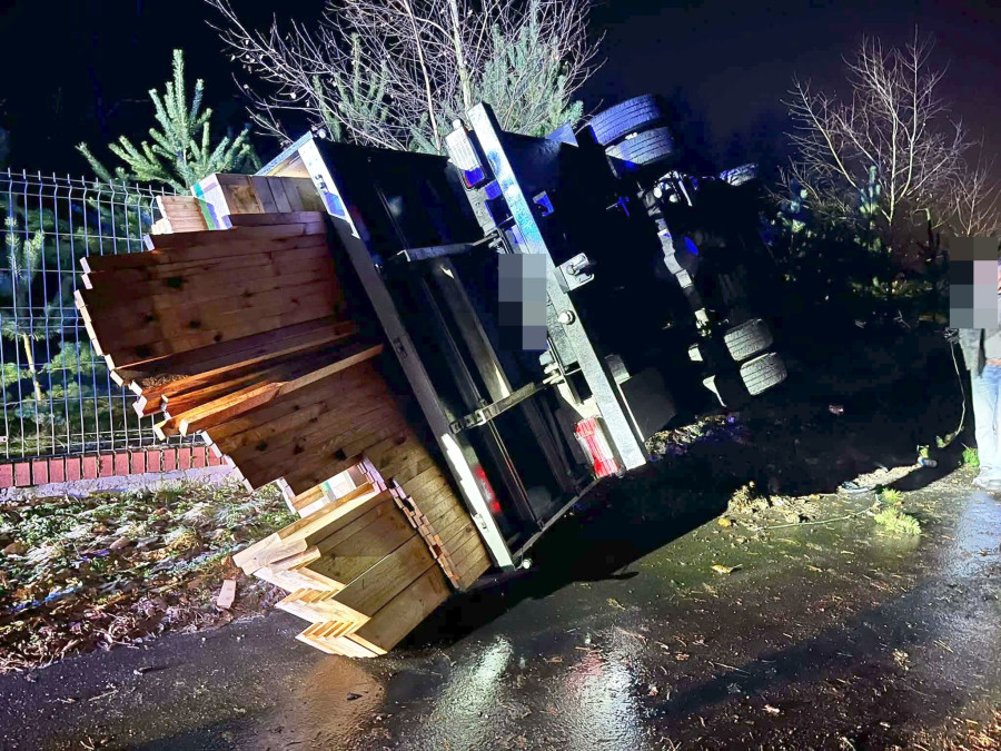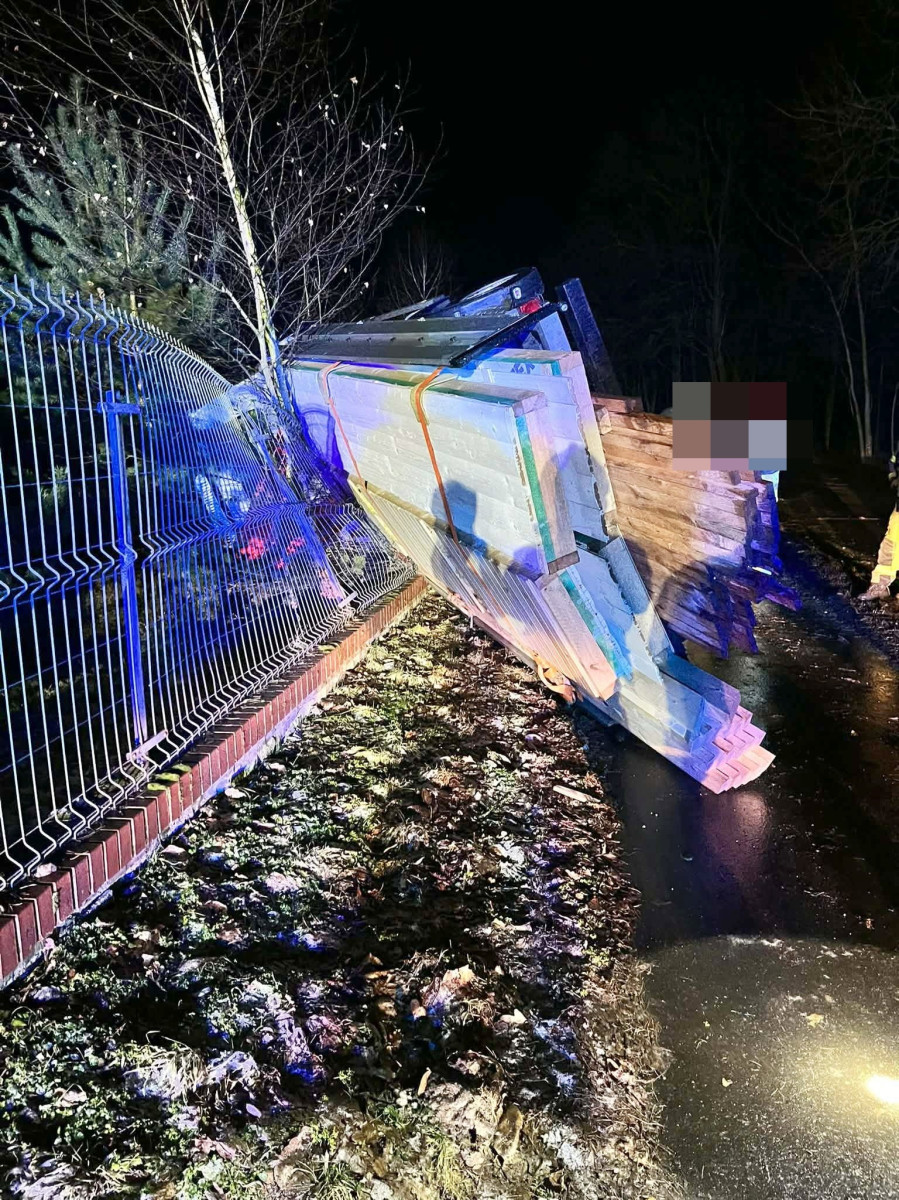 W sobotę 24 stycznia około godz. 22.30 w Gołanicach w ogrodzenie posesji wjechał i dachował Iveco Daily przewożący deski.