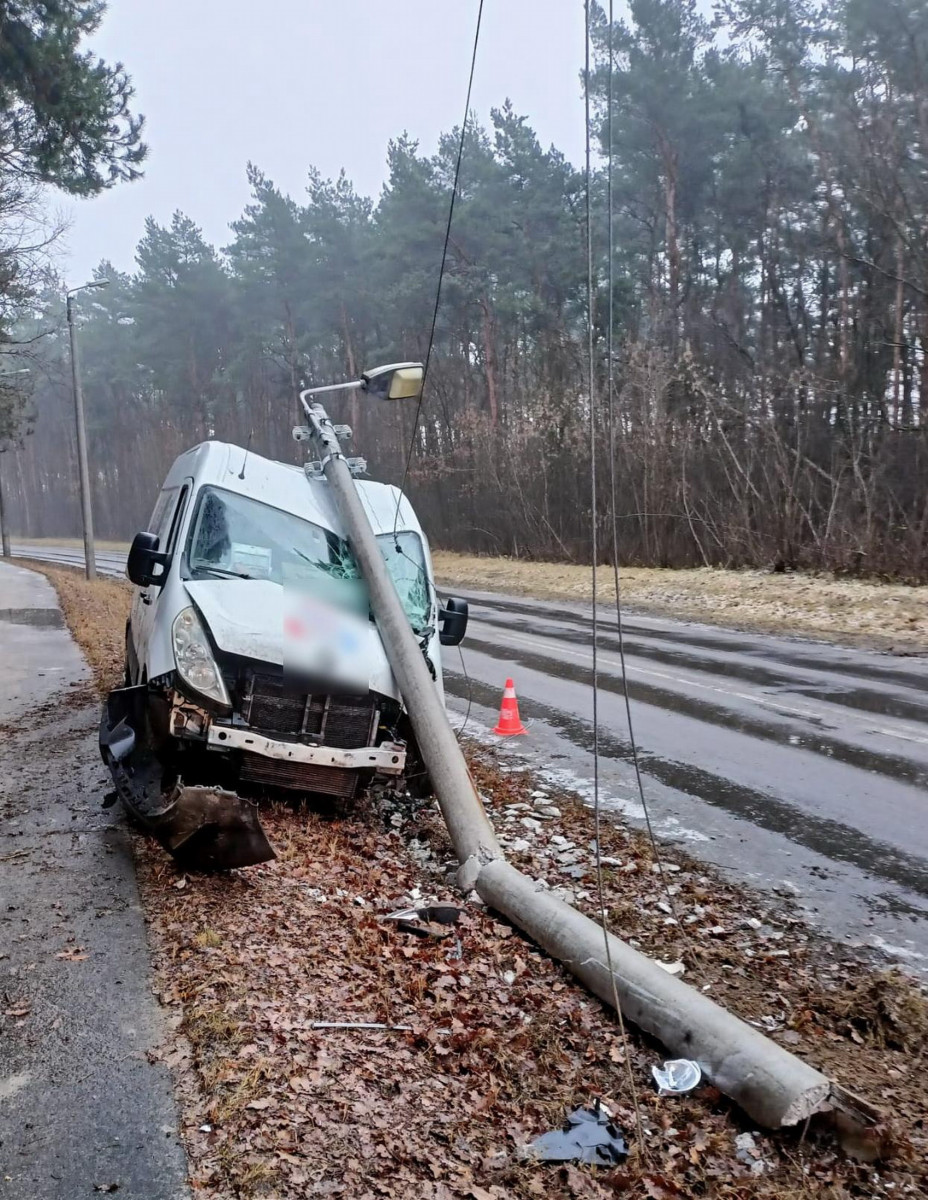W poniedziałek 26 stycznia rano na ulicy Dożynkowej w Lesznie dostawczy Renault wpadł w poślizg i uderzył w latarnię, która przewróciła się na samochód. To nie jedyne kolizje, do których doszło między innymi na skutek gołoledzi.