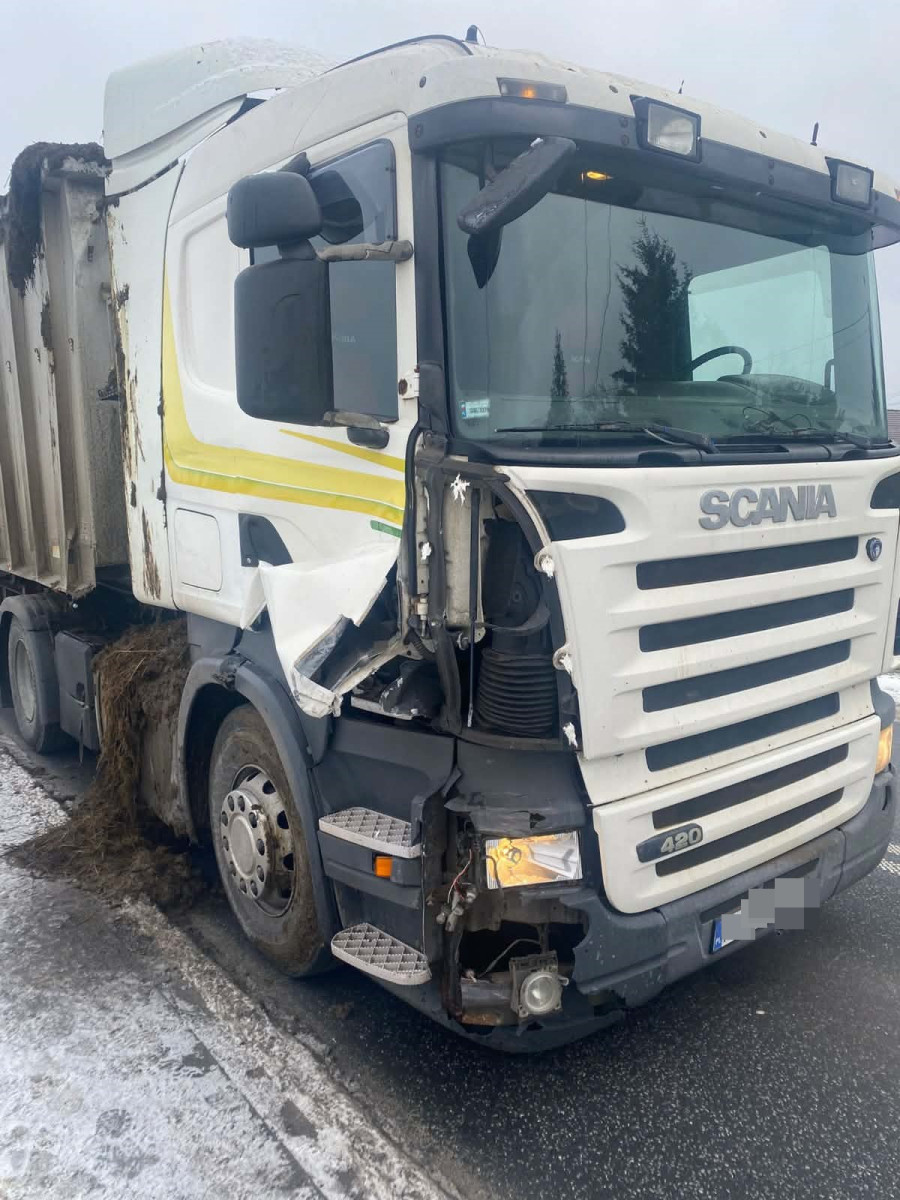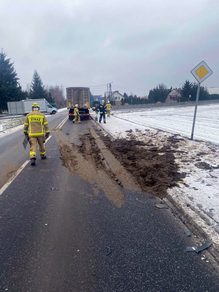 Z wanny Scanii wyleciał obornik, zbrudził jezdnię i narobił smrodu.
