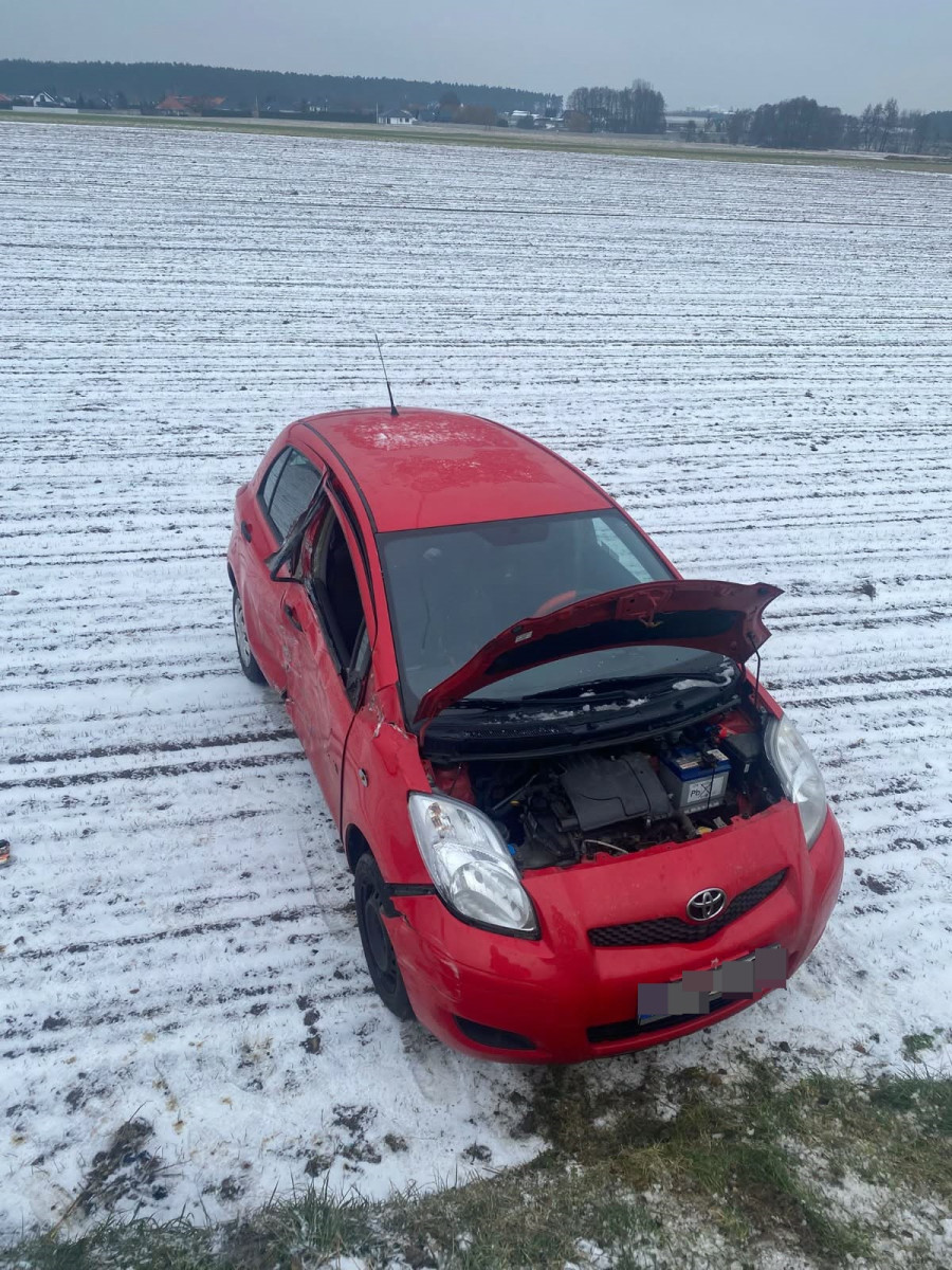 Mowa o Toyocie Yaris i jej kierowcy 22-letnim mieszkańcu Zielonej Góry, który zderzył się z dwoma samochodami, przeleciał autem przez ścieżkę rowerową i wylądował na polu.