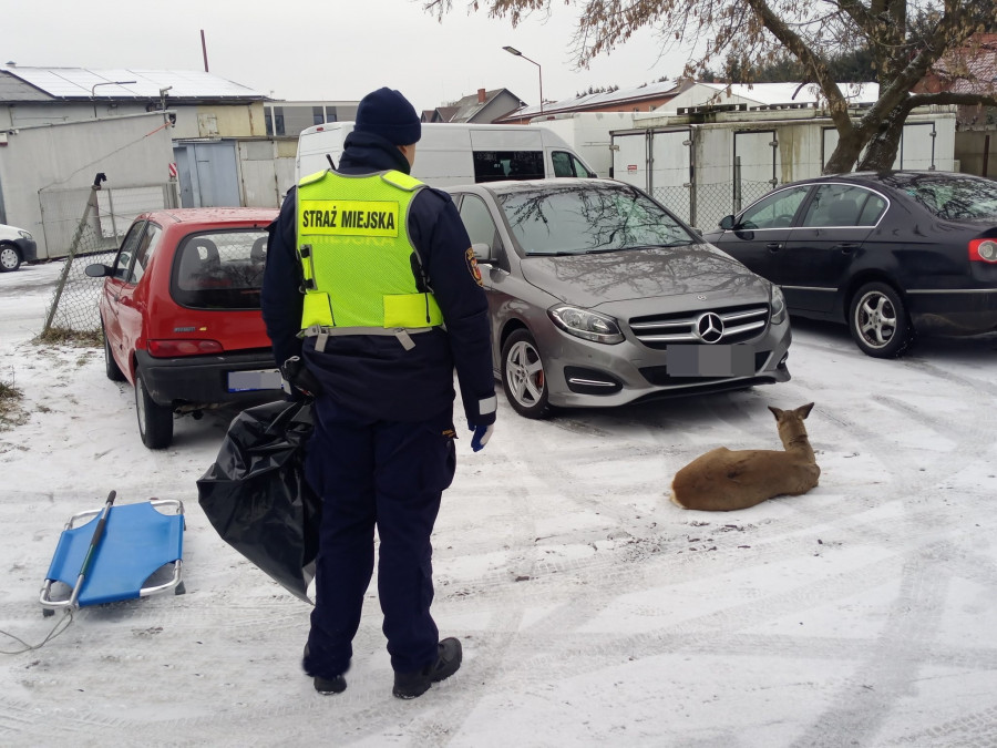 Strażnicy miejscy dostali wiadomość o rannej sarnie.