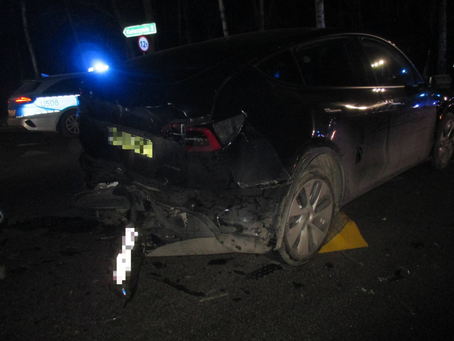 Mandatem został ukarany 40-letni mieszkaniec powiatu leszczyńskiego, który kierując Renault najechał na tył Tesli.