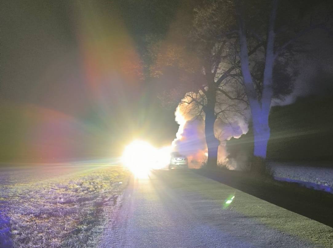 We wtorek przed godz. 20 na drodze Witosław-Popowo Wonieskie w gminie Osieczna zapalił się mercedes.