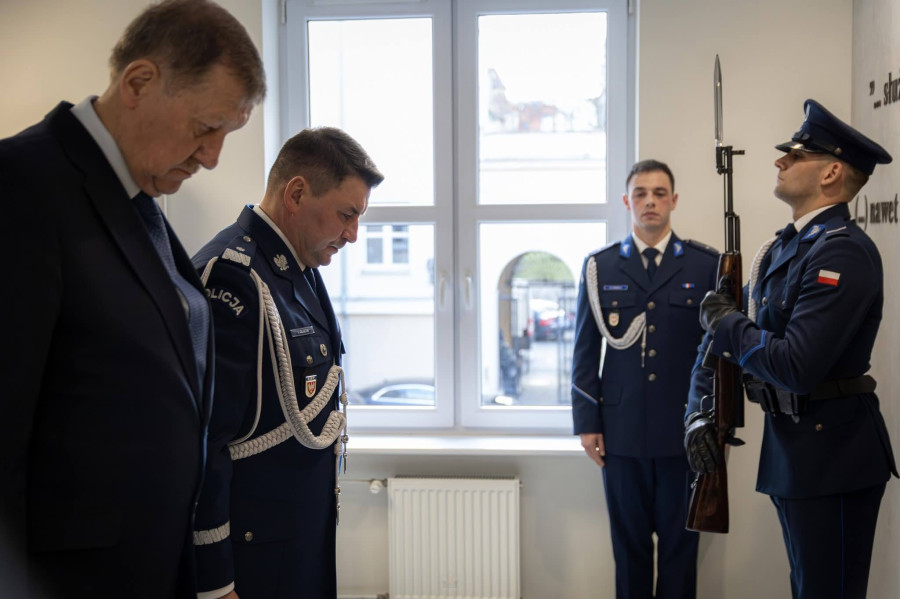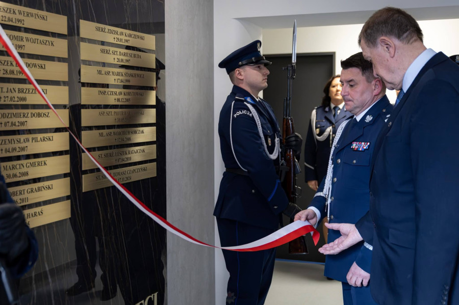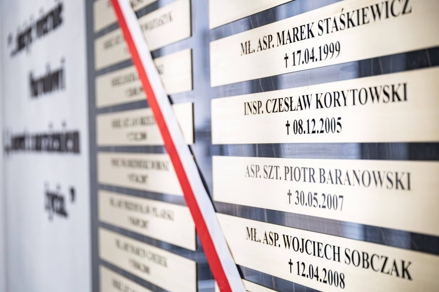 To szczególna tablica. Są na niej wymienieni młodszy aspirant Marek Staśkiewicz i starszy sierżant Leszek Ratajczak. Obaj zginęli na służbie. Ta tablica o tym przypomina. Także o innych tragicznie zmarłych wielkopolskich policjantach.