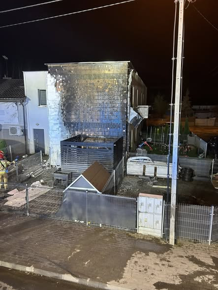 Najpierw paliła się altana przylegająca do domu, następnie ogień przeniósł się na elewację budynku.