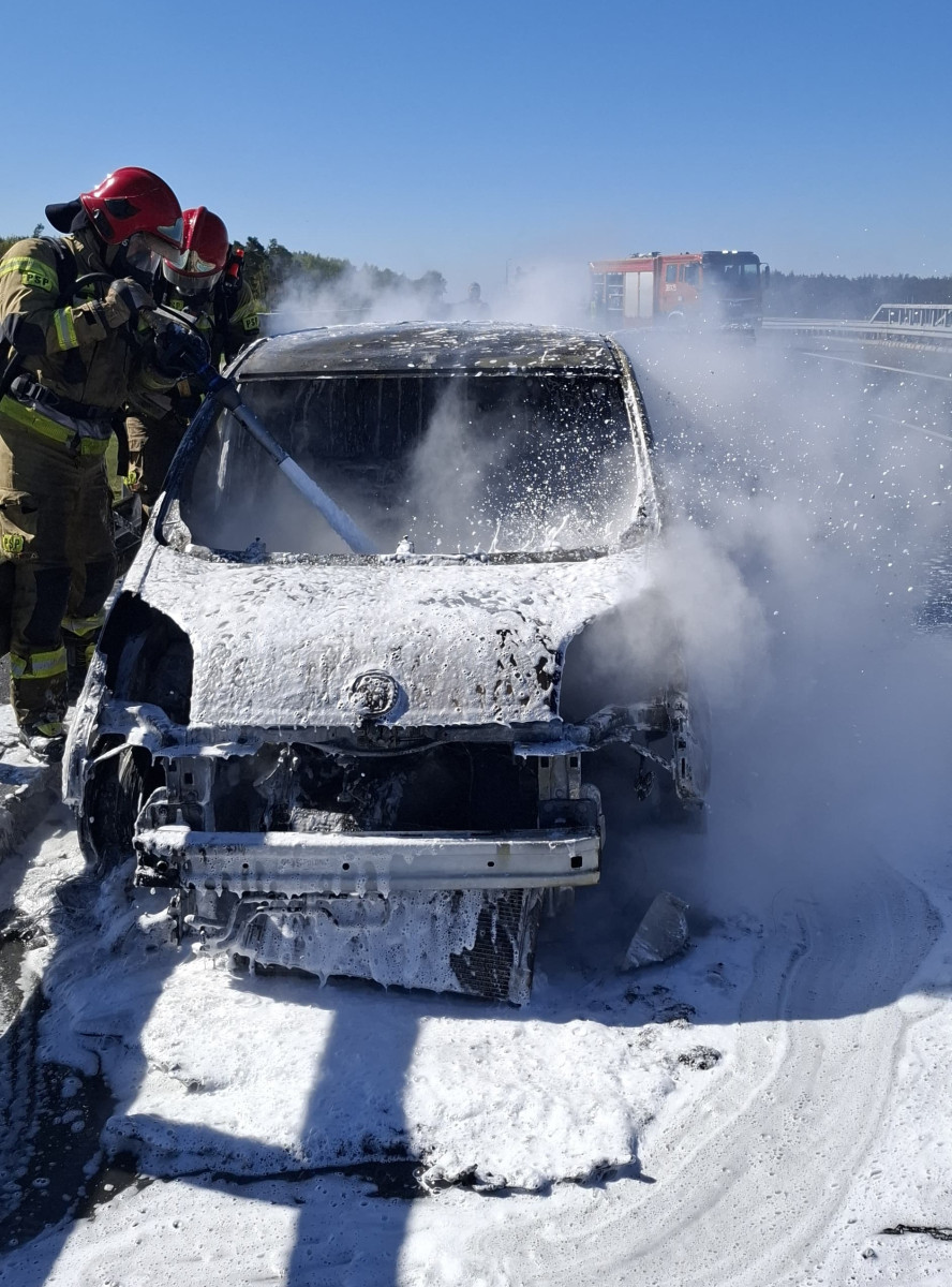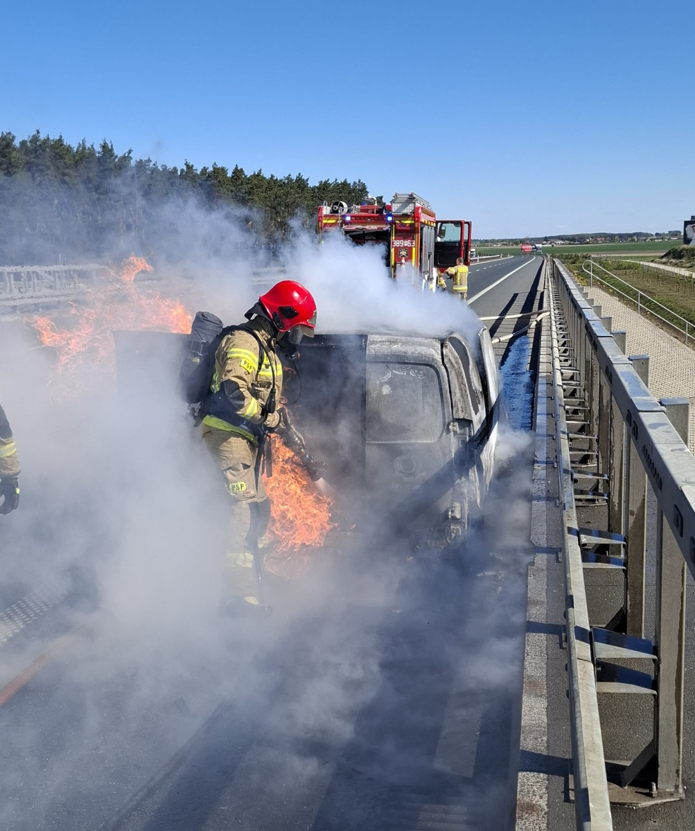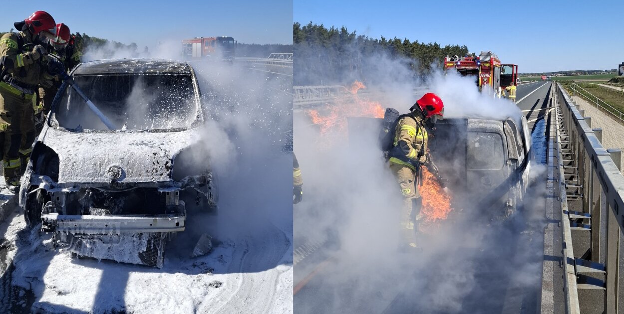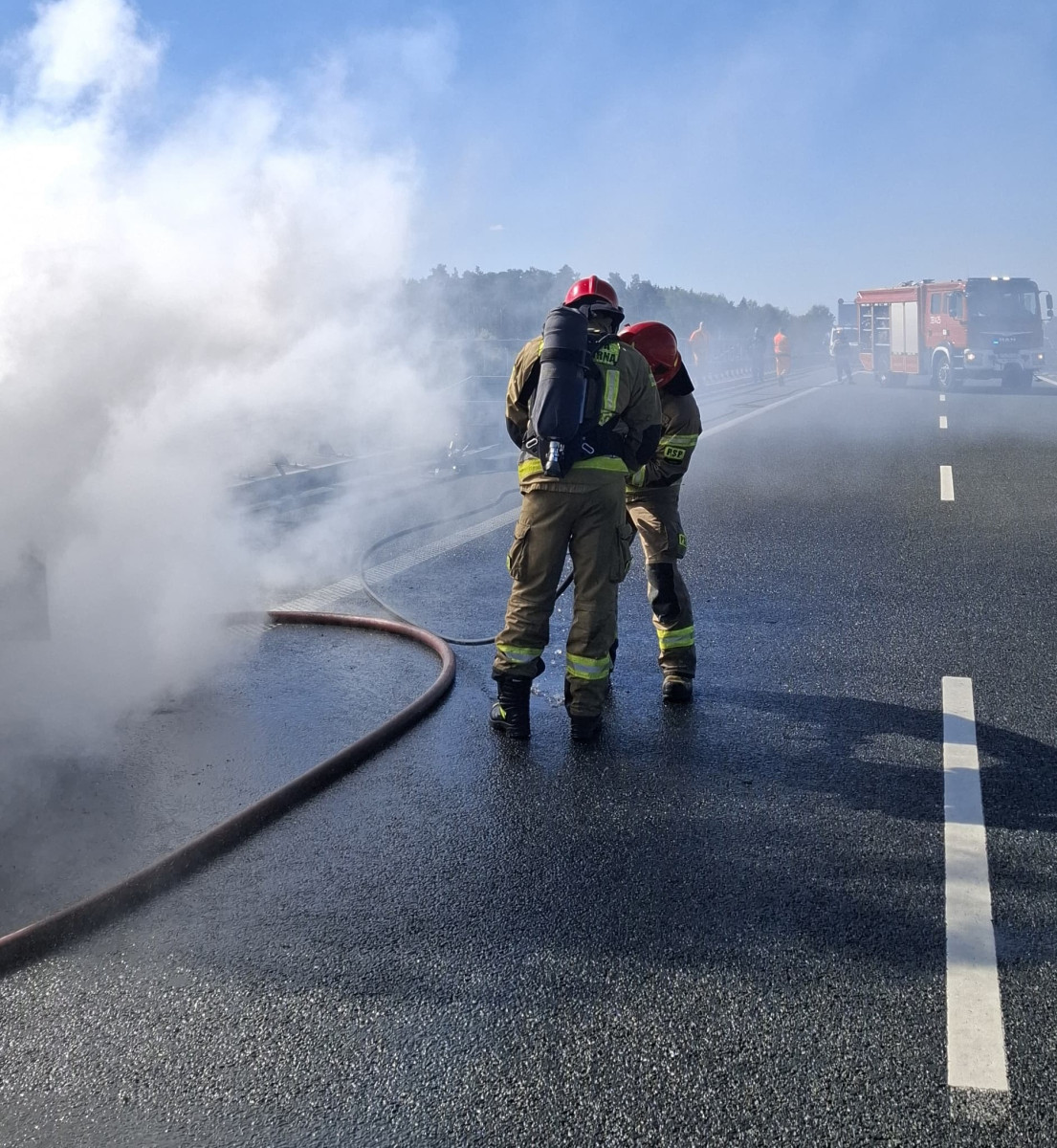 Do pożaru doszło w środę 29 kwietnia przed godz. 10 na drodze ekspresowej nr 5 na jezdni w kierunku Poznania, mniej więcej kilometra za MOP-em Wilkowice.