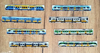 Zestaw 8 magnesów na lodówkę regionalnych pociągów. Są też inne ... czytaj więcej