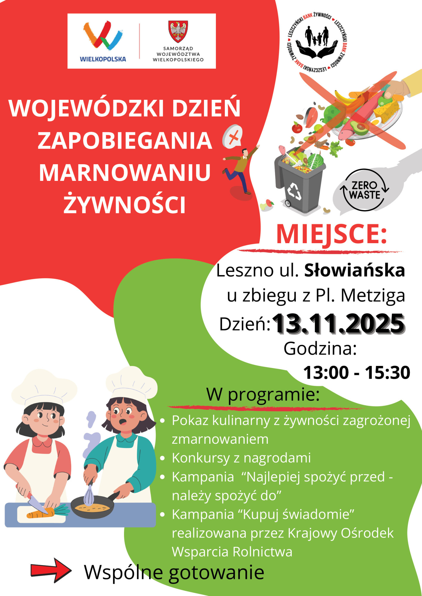 Wydarzenie odbędzie się 13 listopada 2025 roku u zbiegu ulicy Słowiańskiej i placu Metziga w Lesznie. Start godzina 13:00, a w programie m.in: pokaz kulinarny z żywności zagrożonej zmarnowaniem, konkursy z nagrodami, kampanie „najlepiej spożyć przed- należy spożyć do” oraz „Kupuj świadomie” realizowana przez Krajowy Ośrodek Doradztwa Rolniczego.