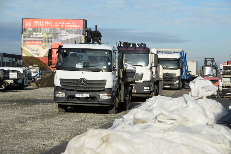 Samochody o bardzo zróżnicowanej ładowności dostarczają materiały na mniejsze lub większe place budowy.
