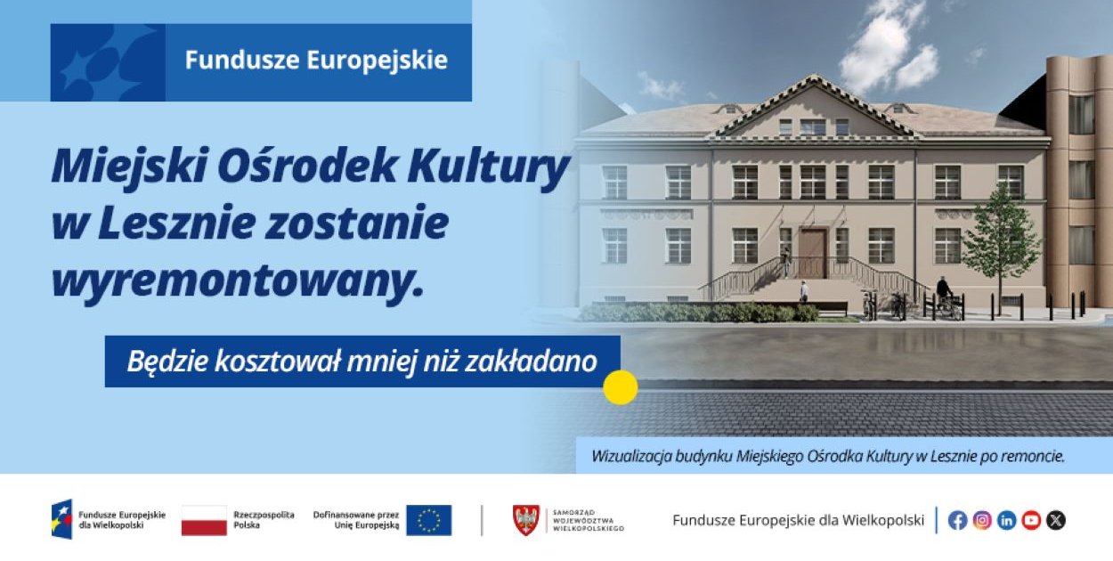 Zmiany w domu kultury to dowód na to, że Leszno słusznie jest stawiane za wzór modelowych rewitalizacji w Polsce, a to nie ostatnie takie przedsięwzięcie. Za 20 mln zł dotacji z Funduszy Europejskich dla Wielkopolski dalsze prace obejmą m.in. miejski rynek, który stanie się nowoczesny, bardziej zielony i dostępny dla osób z niepełnosprawnościami. Zmodernizowana zostanie też willa przy ul. 17 Stycznia, w której niegdyś mieściło się przedszkole. Po gruntownym remoncie będzie siedzibą organizacji pozarządowych i klubu seniora.