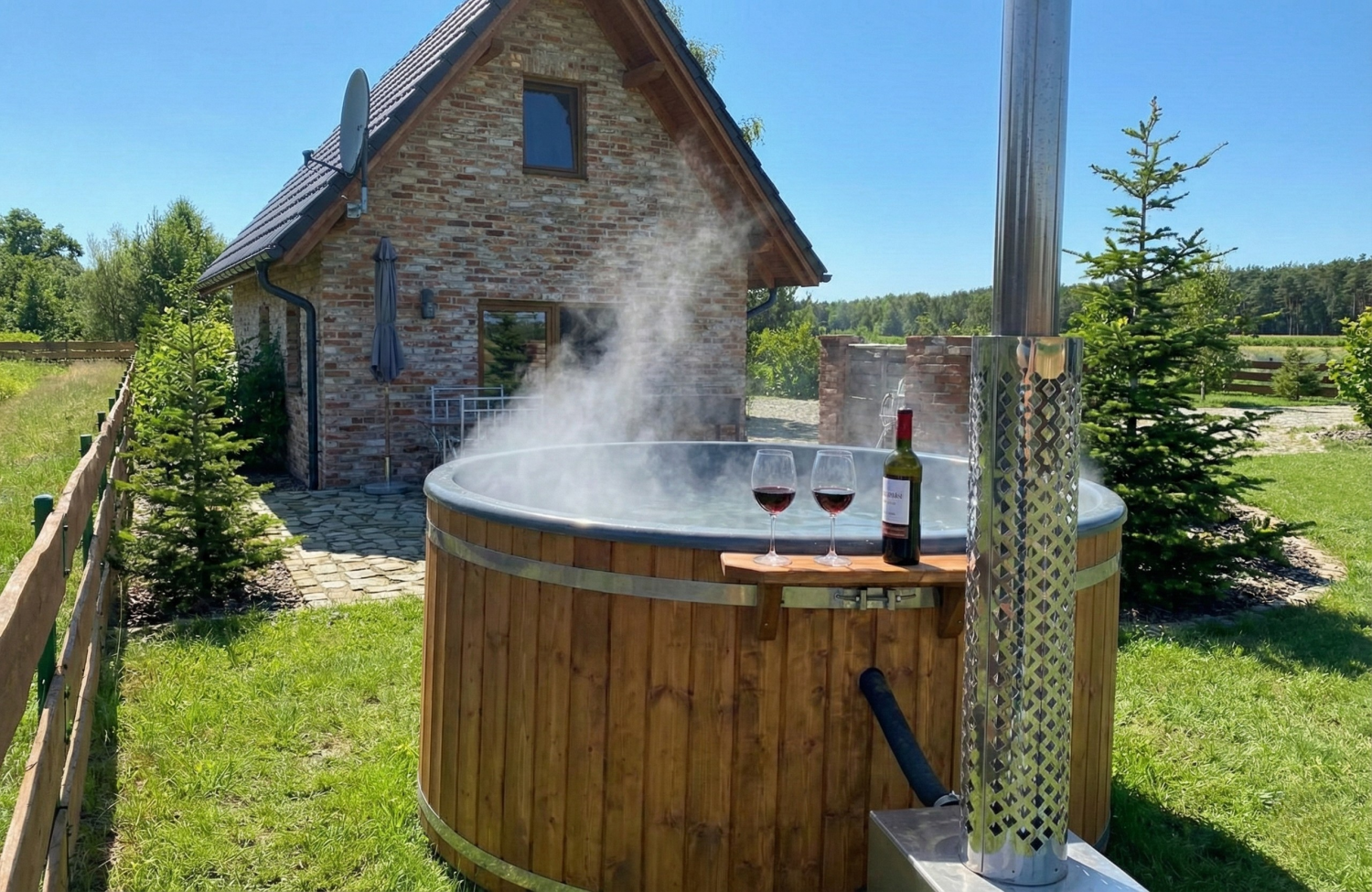 Tu natura spotyka komfort. Domki z tarasami i widokiem na pola czekają przez cały rok. Latem kuszą stawy i trasy rowerowe, zimą – ognisko, cisza i gorąca balia pod gwiazdami.