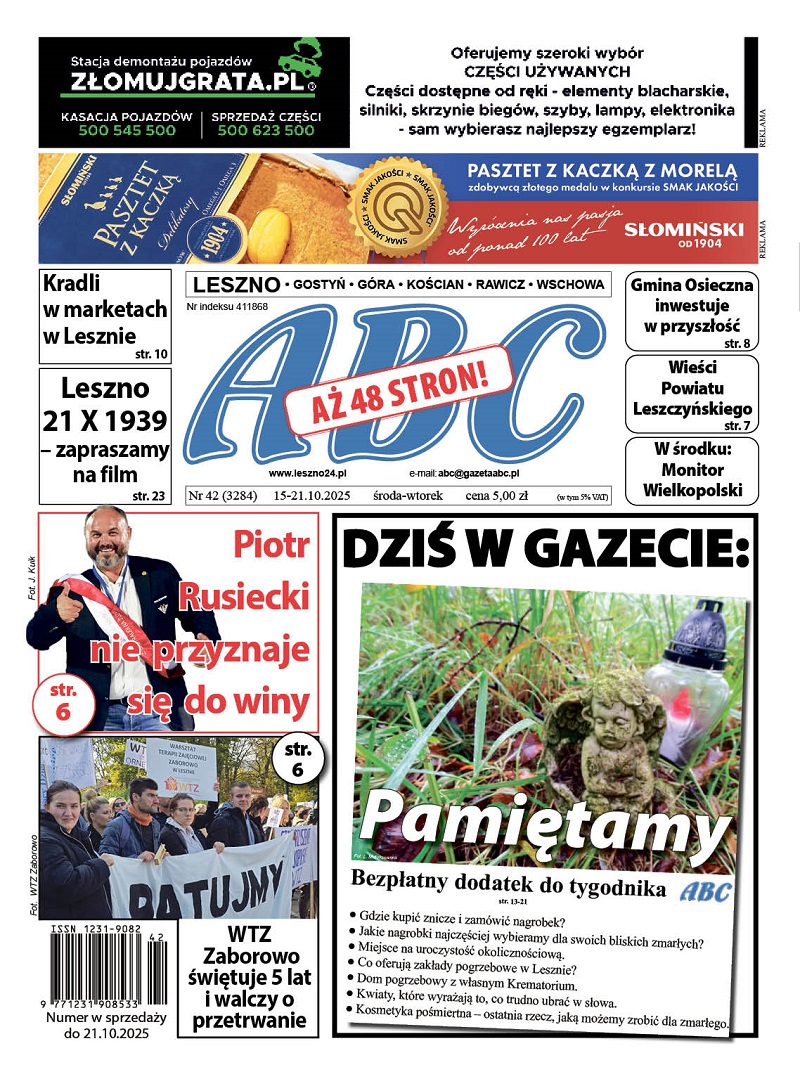 Bieżące wydanie ABC, które jest dostępne w punktach sprzedaży od środy, 15 października ma aż 48 stron. To gazeta wraz z dodatkiem Pamiętamy z okazji zbliżającego się Święta Zmarłych oraz comiesięcznym magazynem Monitor Wielkopolski. Mnóstwo ciekawych tekstów do czytania.
