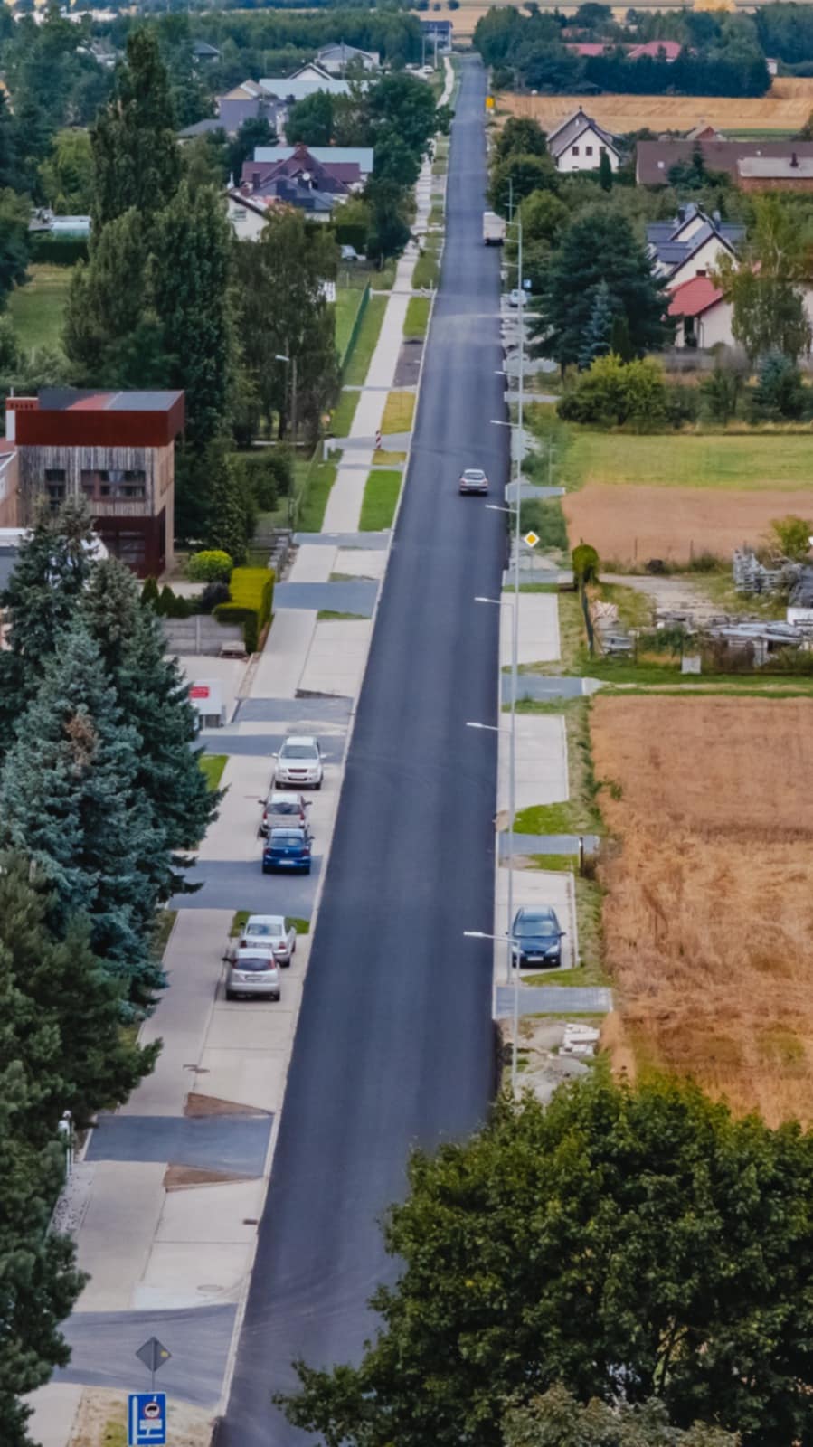 Zakres rzeczowy inwestycji obejmował m.in.: przebudowę drogi gminnej, budowę i remont chodnika, budowę zjazdów oraz zastosowanie rozwiązań BRD w postaci oświetlenia solarnego, oznakowania aktywnego na przejściu dla pieszych, a także rejestratora prędkości.