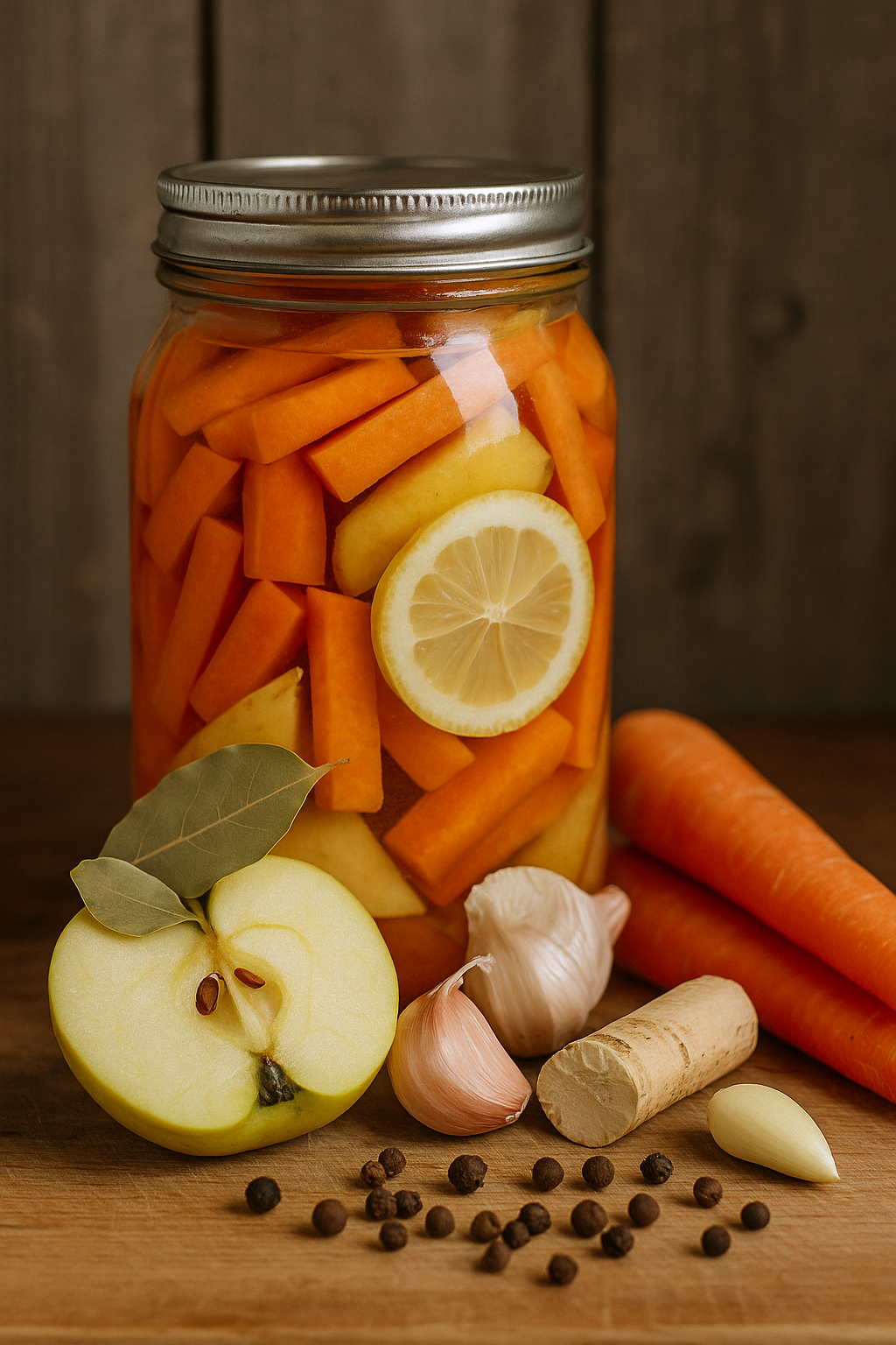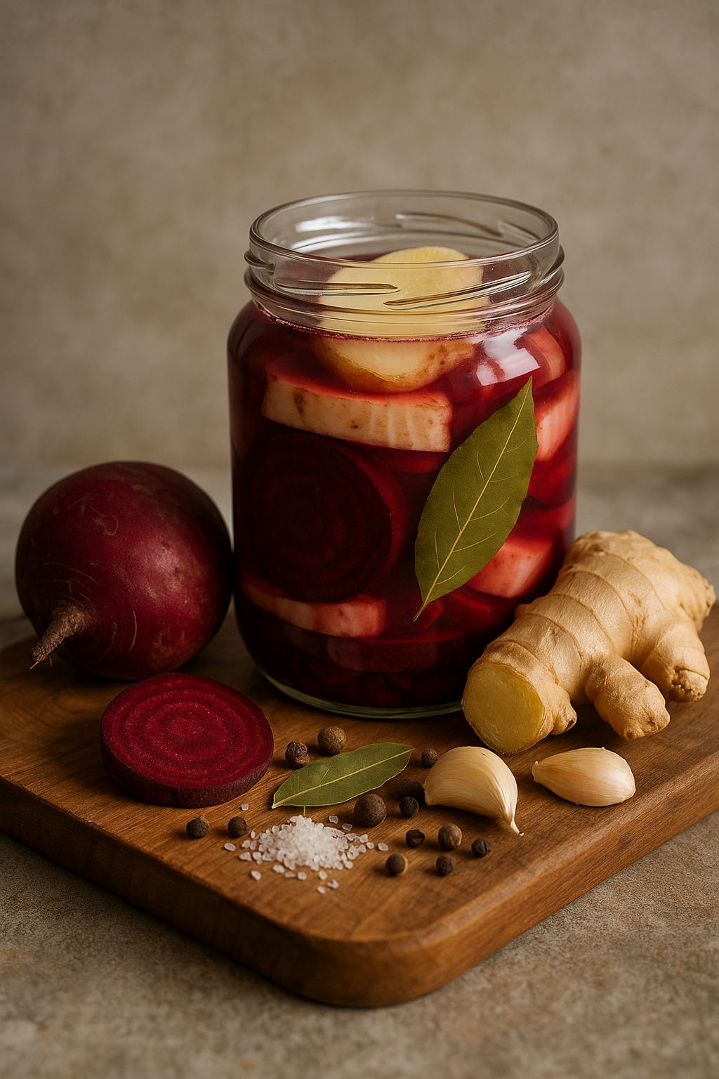 • kawałek korzenia chrzanu (opcjonalnie – dla chrupkości)