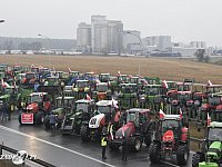 W ramach ogólnopolskiego strajku rolników, który odbył się w piątek, 9 lutego 2024 roku, farmerzy z kilku powiatów Wielkopolski i Dolnego Śląska, w tym z powiatów leszczyńskiego, gostyńskiego, kościańskiego i rawickiego zablokowali drogę ekspresową S5 w okolicach Leszna, węzeł Leszno-Zachód, koło miejscowości Lasocice. Autor zdjęć Bartosz Rolnik.