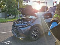 Strażacy z Komendy Miejskiej PSP w Lesznie w poniedziałek, 2 czerwca 2025 roku przed godziną 18 zostali zadysponowani do kolizji na Rondzie Antoniny w Lesznie z udziałem dwóch samochodów. Jeden z nich wbił się w słup latarni.